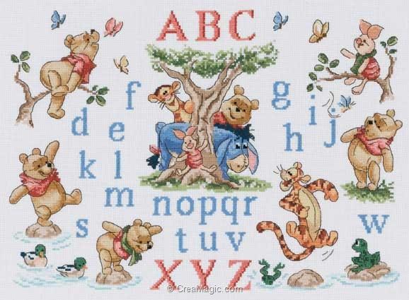 grille point de croix abecedaire winnie #7, visuel point de croix déniché grâce à creamagic.com